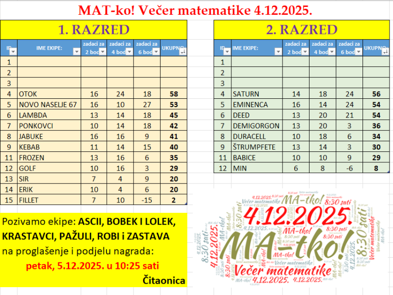 | MAT-ko! Večer matematike 4.12.2025. – 2.razred | |||||||||