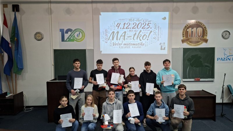 MAT-ko! natjecanje za ekipe prvih i drugih razreda, četvrtak 4.12.2025., 8:30 sati, Plava dvorana