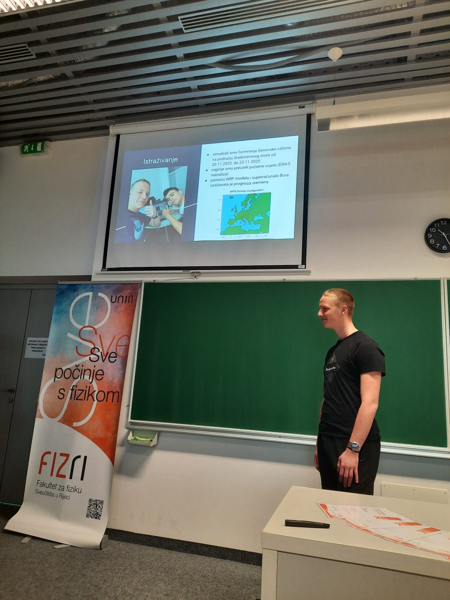 Tema mog projekta bila je Izračun vremenske prognoze. Radio sam projekt sa još jednim učenikom iz Imotskog i pratila su nas dva mentora. Naš zadatak je bio dobiti vremensku prognozu za Genovsku ciklonu koja je bila krajem 2025. godine. Istraživanje smo provodili uz pomoć super računala. Bilo je zanimljivo, izazovno i poučno.