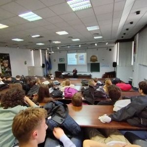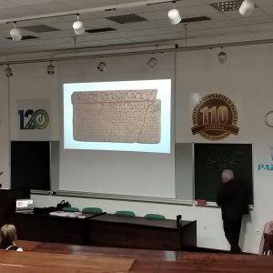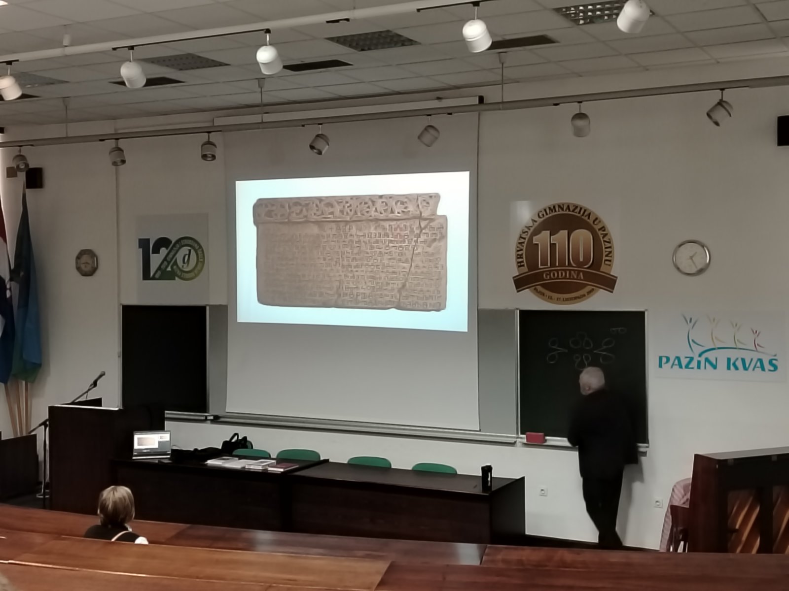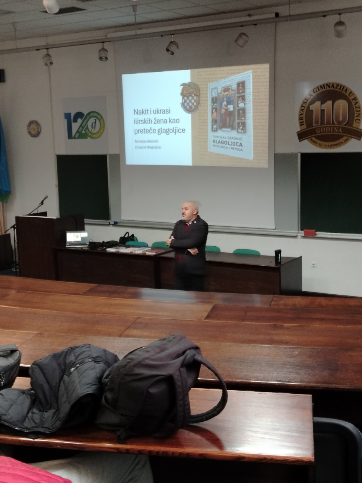 U petak, 14. studenoga, povodom Mjeseca hrvatske knjige, a u organizaciji Gradske knjižnice Pazin, za učenike trećih razreda Gimnazije i Strukovne škole Jurja Dobrile Pazin održano je predavanje Tomislava Beronića na temu „Glagoljica prije Ćirila i Metoda“.
